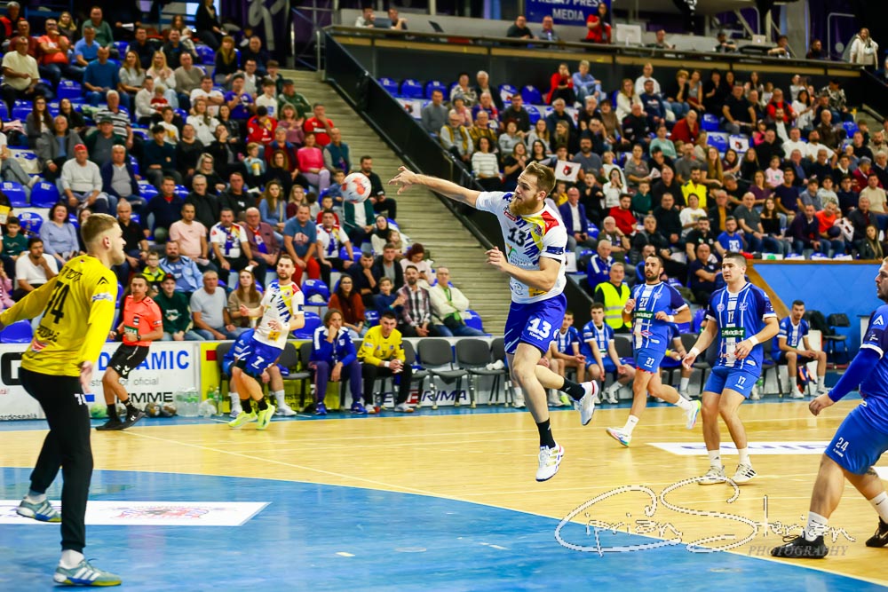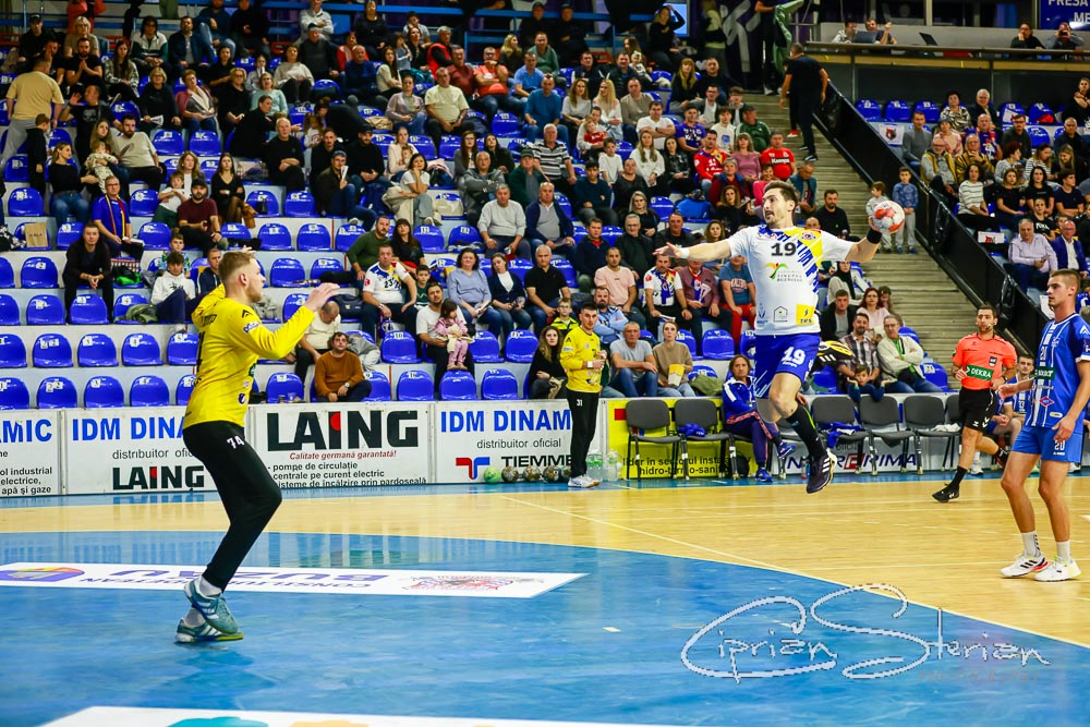 # După nici 7 minute de joc avem 7-1 pe tabelă, iar Edin Klis a băgat-o de 4 ori! Și Cristian Tcaciuc a avut 3 parade în poarta noastră.