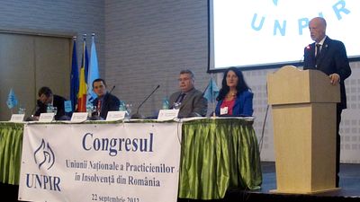 Invitata la Congresul UNPIR, Mirela Iovu, reprezentanta a Asociatiei Romane a Bancilor (ARB) a subliniat “dialogul constant si sprijinul d-lui presedinte Arin Stanescu”. Pe langa urarile de bine transmise, Mirela Iovu a vorbit despre problemele care apar in cazul baniclor, in calitate de creditori majoritari, in procesele de insolventa: “Printre dvs, din nefericire, exista si persoane care nu fac cinste profesiei. Avem cazuri cand ramanem perplexi de ceea ce se poate intampla… exemplu: un practician si-a permis sa sechestreze creditorii minoritari, cerandu-le sa stea nemiscati pana pleaca reprezentantii bancii”. Iovu a aratat ca respectivul practician in insolventa tine in continuare sedintele cu creditori minoritari, iar banca creditoare, care are 68% din creante e tinuta pe dinafara, si ca in fata unor asemenea situatii se vor face plangeri penale.